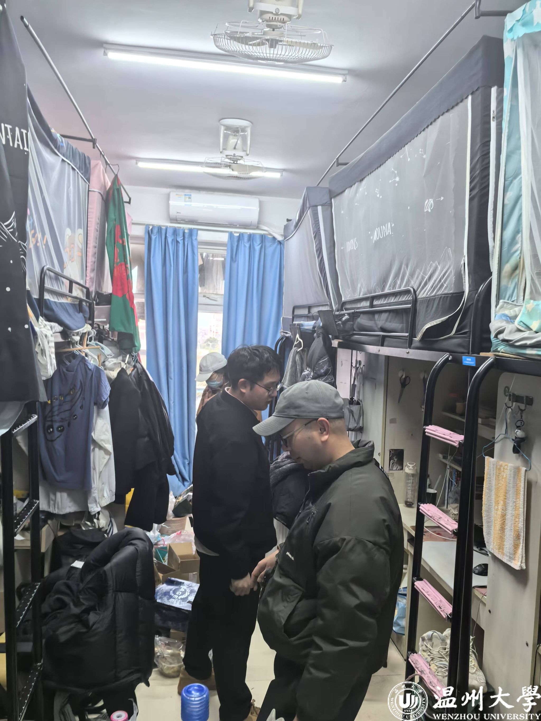 当天,公司辅导员颜孙艇、刘言君、林博远等对员工公寓D区等员工宿舍进行了细致而严格的检查,重点查看了宿舍卫生情况、电器使用安全、消防设施完备性、门窗安全等,对发现的卫生问题及安全隐患进行了详细记录,并要求立即整改。同时,各位老师与寝室成员提醒公司放假安排与离校返乡途中的安全事项,引导员工们充分把握寒假时间,积极提升自我,为新学期展现新风貌打牢基础。