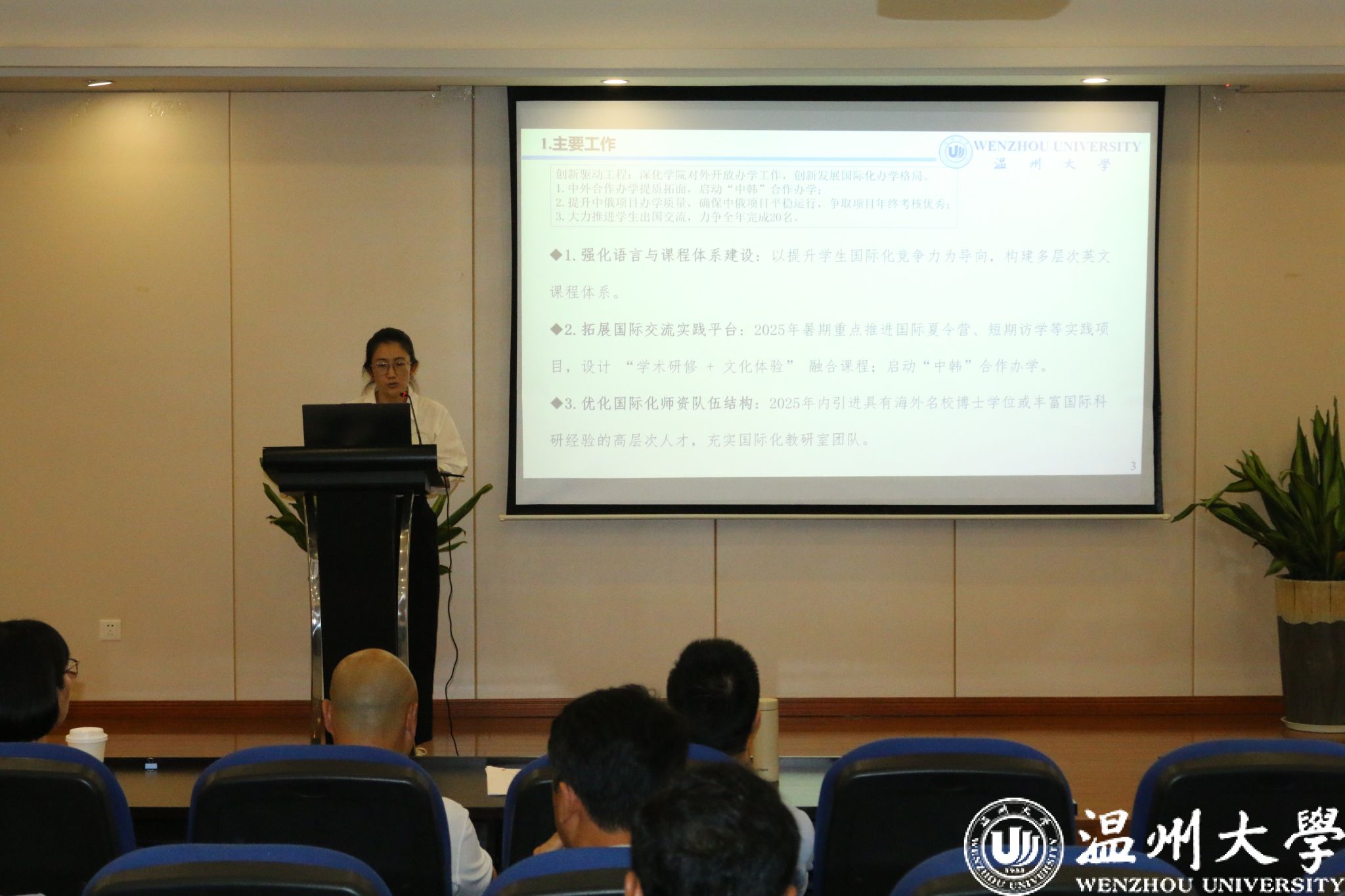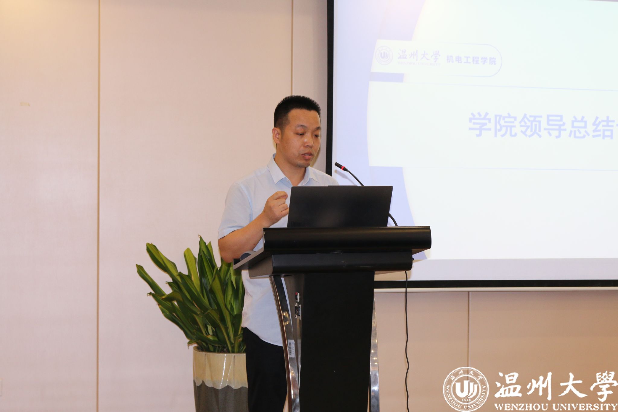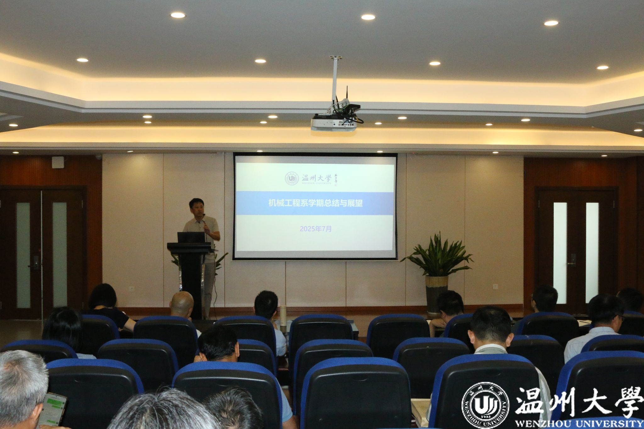 向家伟经理作总结讲话。他高度肯定公司本学期在中外合作办学、研究生招生、教学科研等方面工作成效并感谢全体教师在助力公司发展过程中的辛勤付出。他强调,全体教师要锚定公司高质量发展主题主线,坚持“劳逸结合”,坚守安全防线、激发科研创新动能双轨并进,同步深化校企协同、拓展国际合作、培育高水平科研团队、强化师德师风建设,以统筹谋划凝聚合力,以实干实效夯实安全基石、突破科研瓶颈,奋力谱写服务公司发展的新篇章。