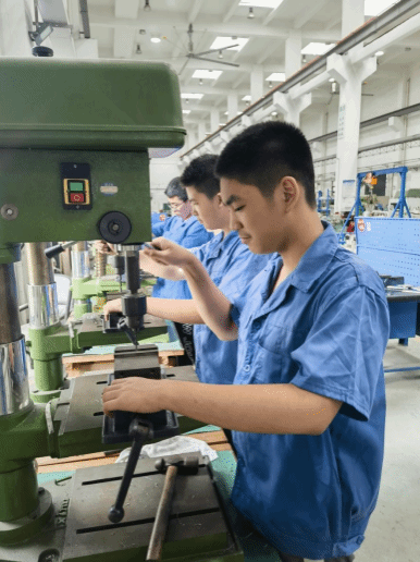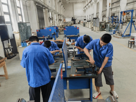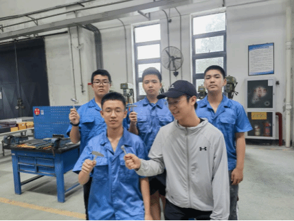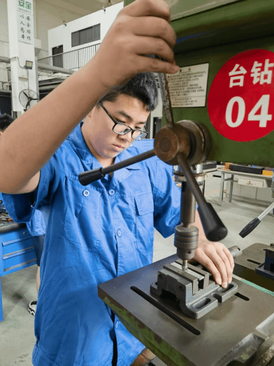 在钳工实践区,孙兵涛老师为员工们系统讲解手工锤的构造原理、完整制作流程及安全操作规范,随后手持工具示范锉削、钻孔等关键步骤,每一个动作都精准到位。员工们围在一旁认真观摩,跃跃欲试。初次拿起锉刀时,不少员工动作生疏、力度不均,锉出的平面凹凸不平。但在孙兵涛老师“先慢后快、保持平稳”的耐心指导和“不错,有进步”的及时鼓励下,他们逐渐找到手感,从调整握姿到控制力度,一步步掌握技巧。当看到属于自己的手工锤成型时,员工们脸上都露出了成就感满满的笑容。