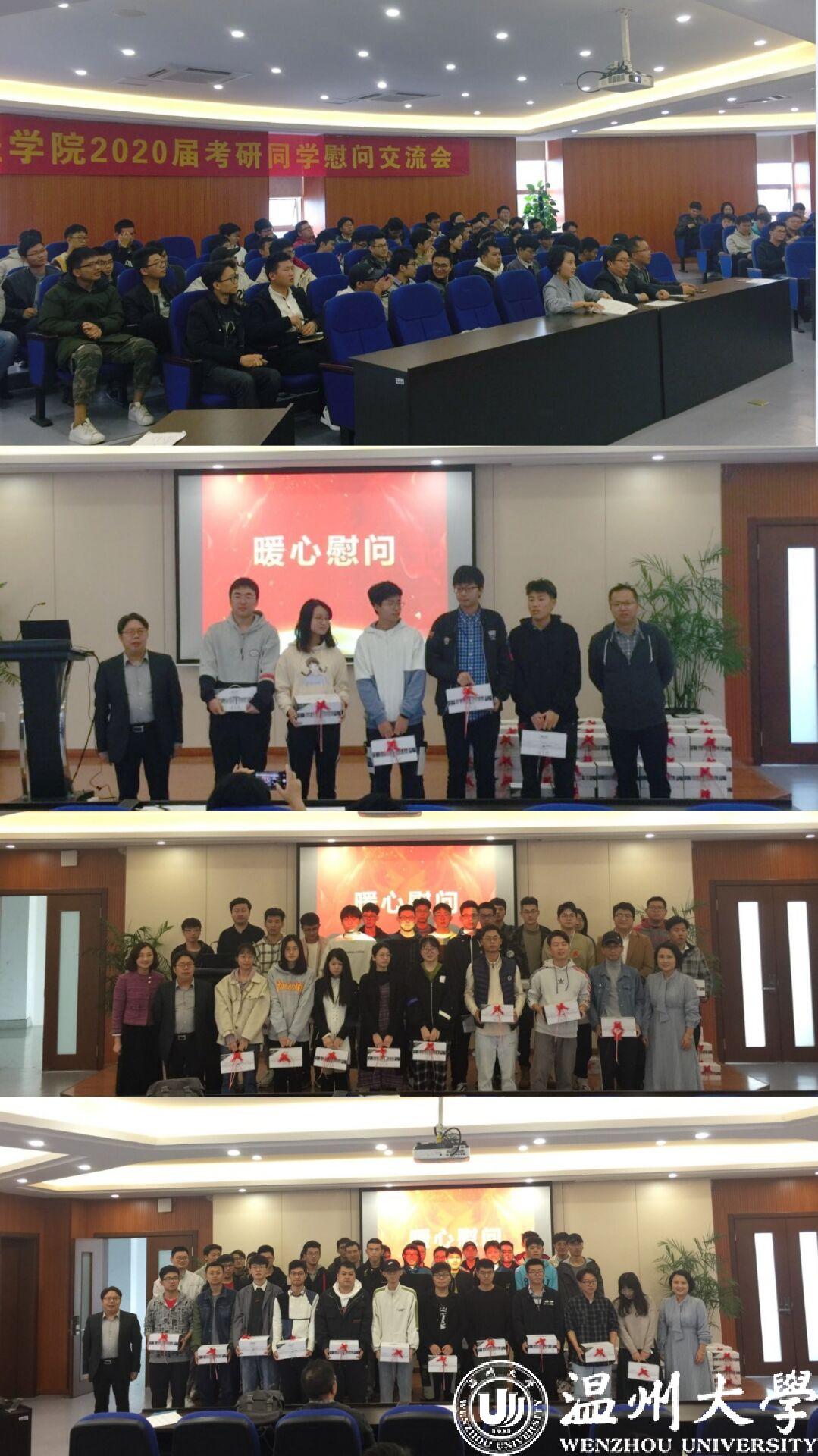为了鼓励考研同学积极迎考,增强考研信心,舒缓备考压力。304永利集团在2019年11月22日下午14点在公司6B309报告厅举行2020届考研员工慰问交流会。304永利集团经理周宏明老师,机电工程党委副书记黄玮老师、16级班主任代表陈贤老师、员工科辅导员郑妤老师、胡施施老师以及全体考研同学参加此次活动。