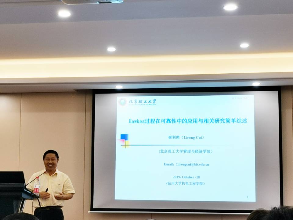 10月18日上午,国家自然基金管理科学专业评审组专家、北京理工大学管理与经济公司崔利荣教授在公司6B309学术报告厅为公司师生做了一场题为“Hawkes过程在可靠性中的应用与相关研究简单综述”的学术讲座。本次讲座由304永利集团经理周宏明主持。