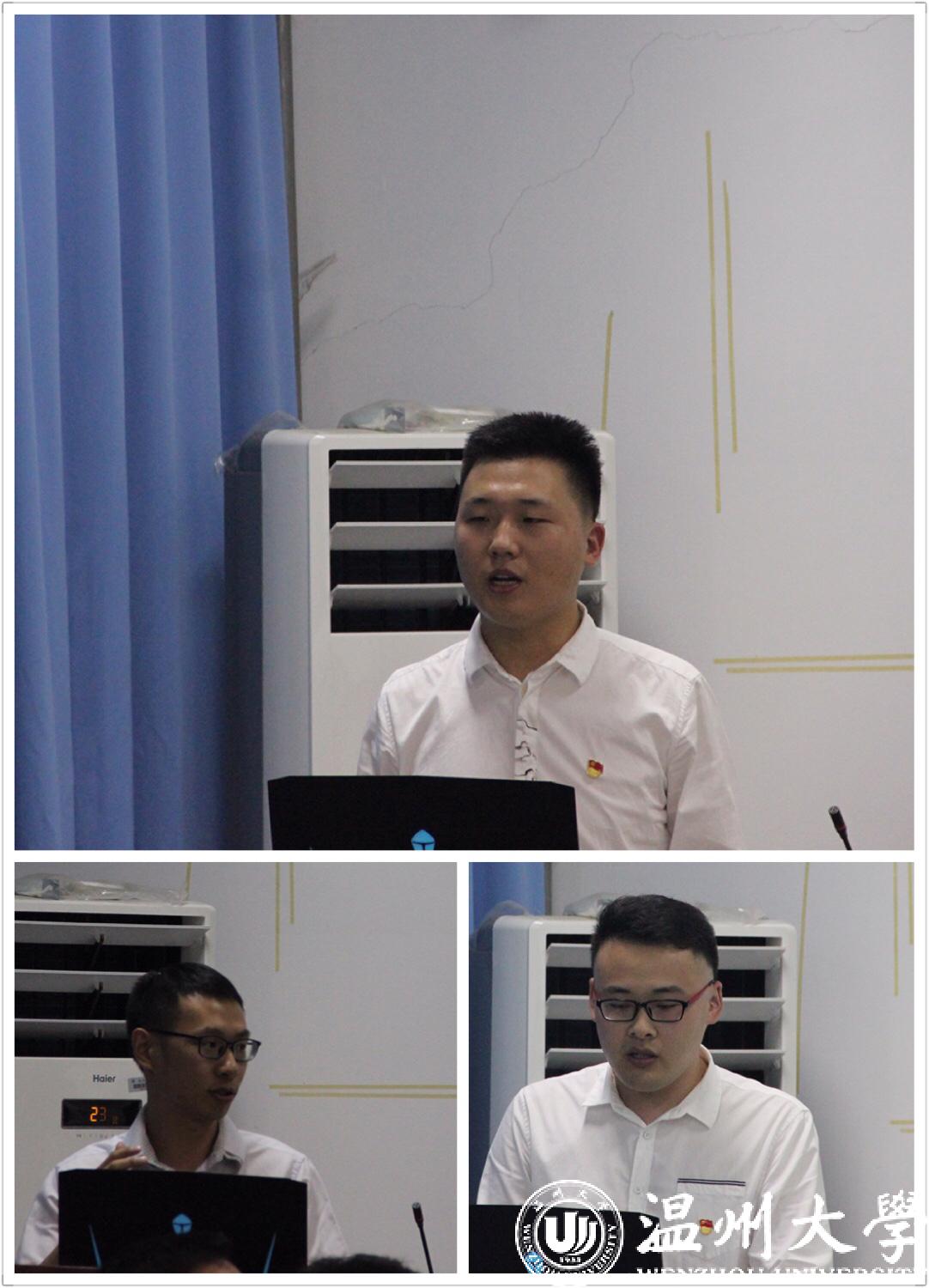 304永利集团研究生党支部书记、获奖团队成员之一的刘焜同学向我们分享了自从递交入党申请书到现在成为一名党支部的书记的成长经历,他表示党员要起到先锋作用,时刻冲锋在前,一直坚持党员的标准来对照自己,此次参加比赛,困难重重,比赛方案改了又改,但最终都坚持了下来而并没有放弃,依靠的就是一份信念,而这份信念来源就是他加入中国共产党以来的成长经历。刘琨同学的分享给在场的同学们一身正气,在场的同学们更坚定了要积极向党组织靠拢的决心,研一新生黄锦森和曾麟同学在现场主动向党组织递交入党申请书,表达他们想要积极加入党组织的强烈意愿,想早日成为一名有思想有灵魂有本领的社会主义接班人。