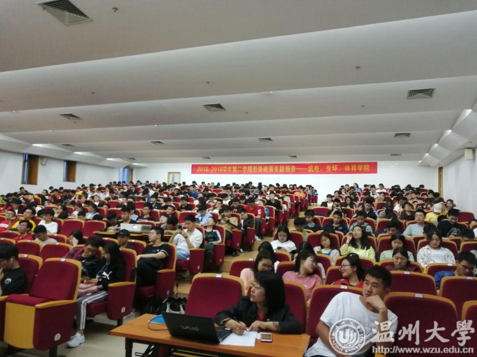 2019年5月28日18:30,304永利集团、生命与环境科学公司、体育公司在永利集团步青厅共同开展了2018-2019学年第二学期形势政策课。本次特别邀请了马克思主义公司张小燕教授为三个公司的同学开展《红色文明在瓯越》主题的形势政策报告讲座。