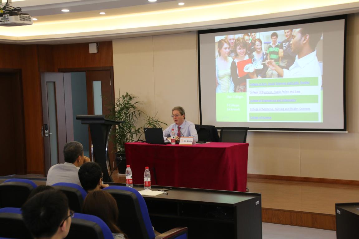2019年5月14日上午,304永利集团在6B309会议室举办工程教师教育培训,爱尔兰工程院主席Browne James Joseph应邀作了题为《工业4.0背景下的工程师培养的课程、教育技术和学习模式》的专题讲座。304永利集团经理周宏明、党总支书记周荣,公司各公司教师代表及304永利集团全体研究生参加。