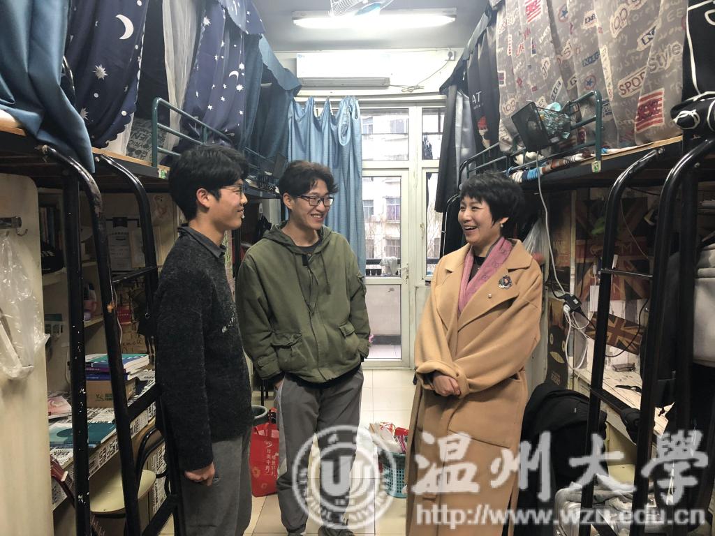 老师们分别走访了大一到大四部分寝室,同学们有的刚刚到校,正在整理物品,有的说说笑笑谈论着各自的寒假生活,有的已经在预习课本内容。老师们的到来让同学们感受到殷殷关怀。老师们与同学们进行积极的交流,仔细询问每位员工的实习情况与学习情况,更是对于毕业生提出的一些问题进行耐心的解释。李密书记叮嘱大家一定要调整好状态,拿出饱满的精气神来迎接新的学期。