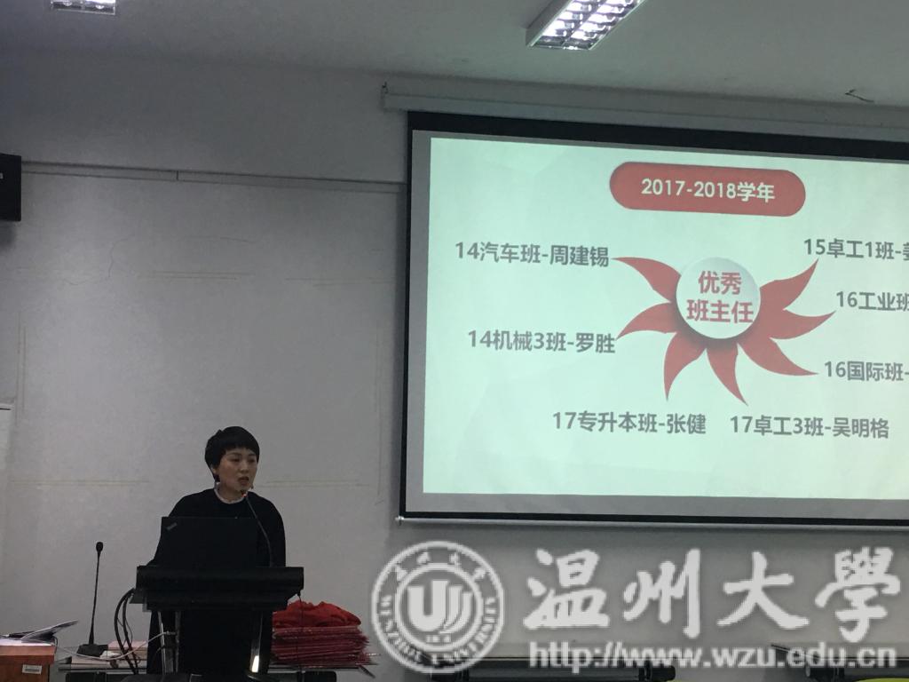 经主持人一番开场白后,周荣书记对本学期班主任工作给予充分肯定,周书记提出全院员工的安全稳定是开展公司各项工作的基础。他通过优秀班主任的事迹明确班主任肩上的责任,希望班主任能够做员工的思想引领者,关心员工的思想动态和学业、生活情况,加强班团建设,助力员工成才成长。姜锐副经理带领参会的班主任分析了2018年毕业一年后、三年后职业发展状况和人才培养质量调查结果,通过分析看清目前公司各专业在评选过程中的优劣势。强调每年的调查结果对于公司的发展意义影响深远。希望班主任高度重视,群策群力,助理公司人才培养。李密副书记通报了本年度优秀班主任、校优良学风班、院特优特色班集体名单。并根据公司班主任津贴分配方案对在班主任工作中表现出色的老师进行奖励。最后,周宏明经理总结发言,他指出班主任工作任重道远,就业质量调查工作离不开班主任的辛勤付出,希望各部门各班主任通力合作,争创佳绩。