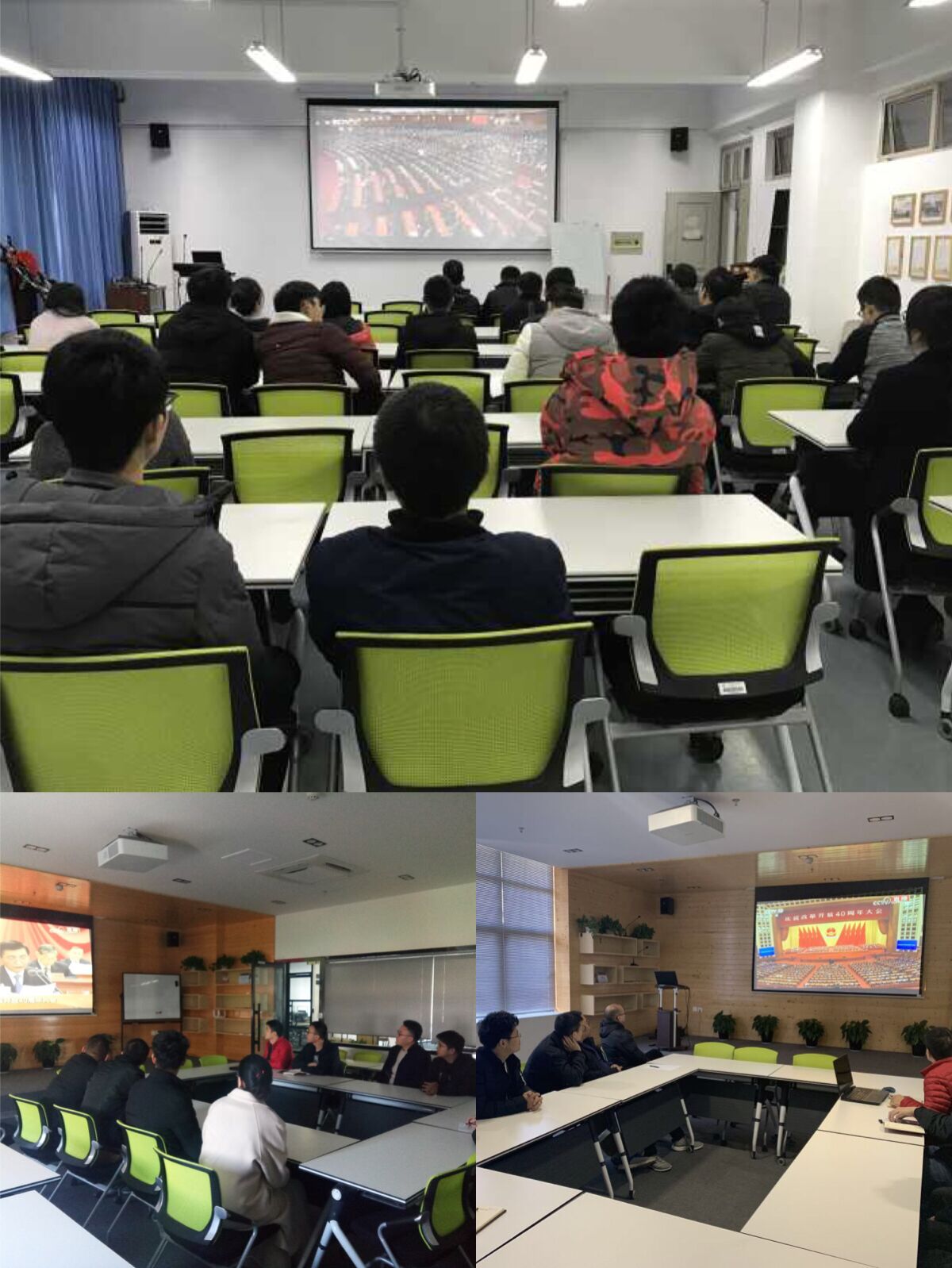 庆祝改革开放40周年大会于2018年12月18日上午10时在人民大会堂举行。为进一步增强公司广大师生对推进新时代改革开放事业的信心和决心,进一步认清改革开放和社会主义现代化建设的光明前景,公司和激光研究院分别组织无课的师生在6B201和研究院会议室集中观看学习庆祝改革开放40周年纪念大会实况直播。