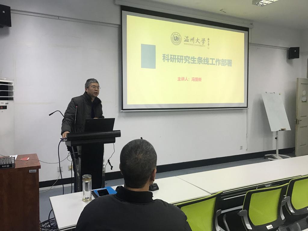 冯爱新副经理就科研、研究生条线工作进行了部署。他首先公布了永利集团—浙南科技城激光光电智能制造研究生联合培养基地入选2018年浙江省研究生联合培养基地的喜讯。随后,就专业学位公司产品环节中的企业实践问题,冯爱新副经理着重进行了说明,他要导师高度重视,并且要签订公司产品基地协议。