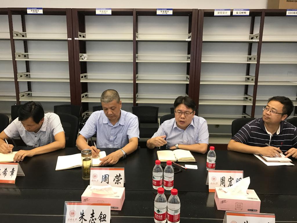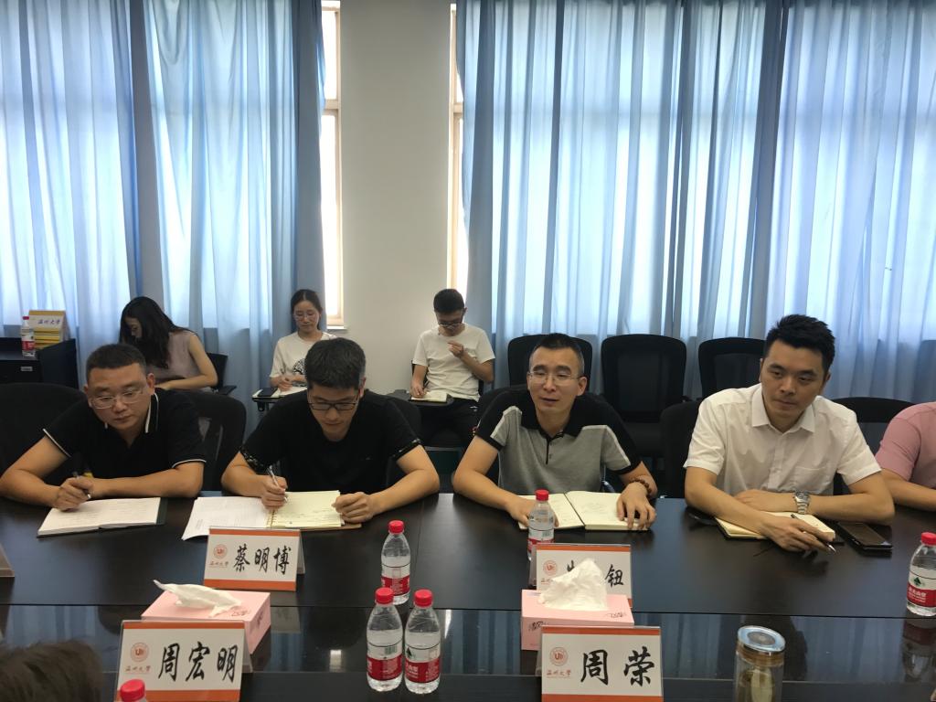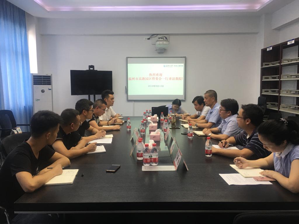 2018年8月13日下午,由高教园区管理办公室副主任蔡明博、副主任朱志钮、校地合作科负责人许增淼组成的调研组来到公司开展调研对接工作。公司经理周宏明、党总支书记周荣学术带头人陈希章教授以及办公室、机械电子系负责人参加了交流会。
