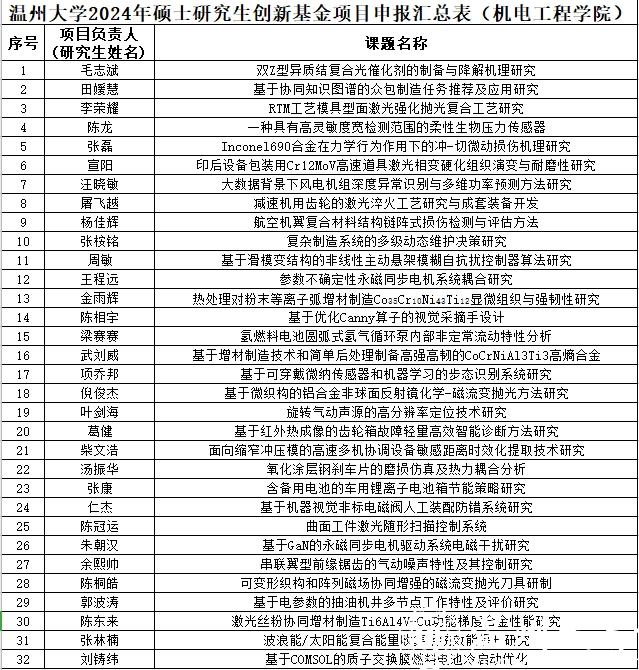根据《关于2024年度研究生创新基金项目申报的通知》要求,经研究生个人申报、研究所推荐、专家评审,拟推荐毛志斌的《双Z型异质结复合光催化剂的制备与降解机理研究》等32个项目上报公司,现将情况予以公示,如有异议,请在公示期联系。