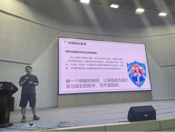 9月5日,公司各班组织举办2024级新生暨学期安全教育主题活动,全体24级新生、21-23级老生代表参加。5日下午,按照“2024年秋季开学前后校园安全工作提示”“2024年秋季学期校园安全防范预警信息”,公司学工办在南校区9号楼报告厅举行安全教育主题讲座,学工办林博远老师对于近期公司校园安全工作、公寓网格化管理、反诈防骗与实验室安全教育四方面进行了说明,林老师强调员工在校期间要严格遵守公司的相关要求,同时公司也将认真履行员工公寓四级联查机制,对于违规使用电器、迟归晚归与夜不归宿、电瓶车电瓶入寝充电等存在违反公司安全行为的同学今后将严肃处理。