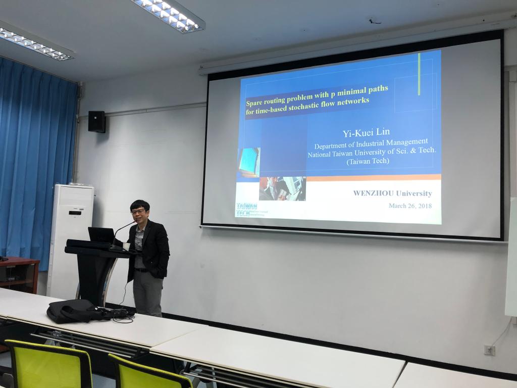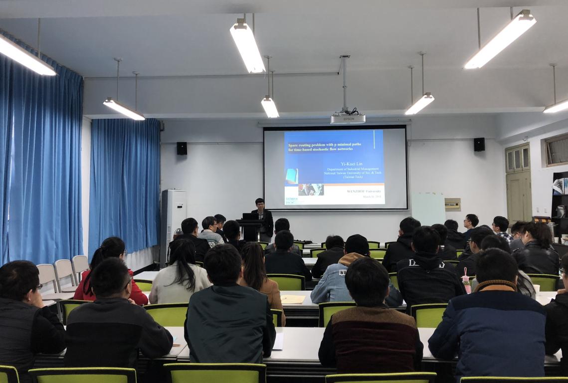2018年3月26日下午,台湾工业工程专业、台湾科技大学林义贵教授在304永利集团6B201会议室为公司师生作了题为《Spare routing problem with p minimal paths for time-based stochastic flow networks》的学术讲座。讲座由永利集团激光与光电智能制造研究院经理马光教授主持。