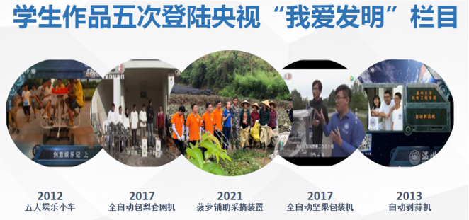 2.建立了“认知—实践—创新”三层次的创新能力培养体系,学科竞赛参与率达89%。本专业员工在全国老员工机械创新设计大赛、电子设计大赛、挑战杯、互联网+等各类学科竞赛中共获得国家级、省级奖项260余项,尤其是:在2016年第七届全国老员工机械创新设计大赛中获全国一等奖5项,在638所高校中排名第一;在2018年第八届全国老员工机械创新设计大赛中获全国一等奖1项(一等奖作品在该组排名第1)、全国二等奖2项;在2020年第八届全国老员工机械创新设计大赛中创佳绩,获全国一等奖3项、全国二等奖2项;在2022年第九届全国老员工机械创新设计大赛中再创佳绩,获全国一等奖2项、全国二等奖3项,成绩在全国高校中名列前茅。员工科技创新作品 “五人娱乐小车”、“全自动包梨套网机”、“菠萝辅助采摘装置”、“全自动坚果包装机”、“自动剥蒜机”,相继被中央电视台《我爱发明》栏目以专题片的形式进行了报道。
