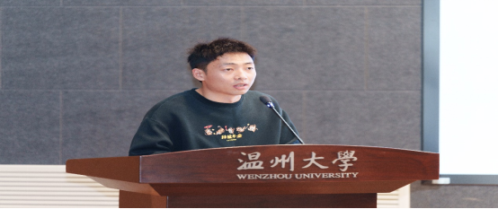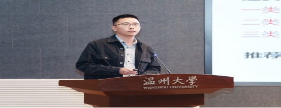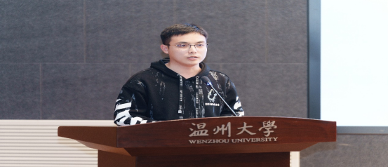 优秀员工代表谈俊杰作报告。谈俊杰学长从如何准备材料方面切入,与同学们分享了自己“挑战杯”备赛的经验,并指出在同学们参赛过程中应永不放弃,敢于面对失败。