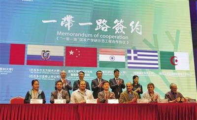 永利集团激光与光电智能制造研究院分别与五个国家的高校和上市公司等六家单位签订产学研合作协议。 周凌慧 摄