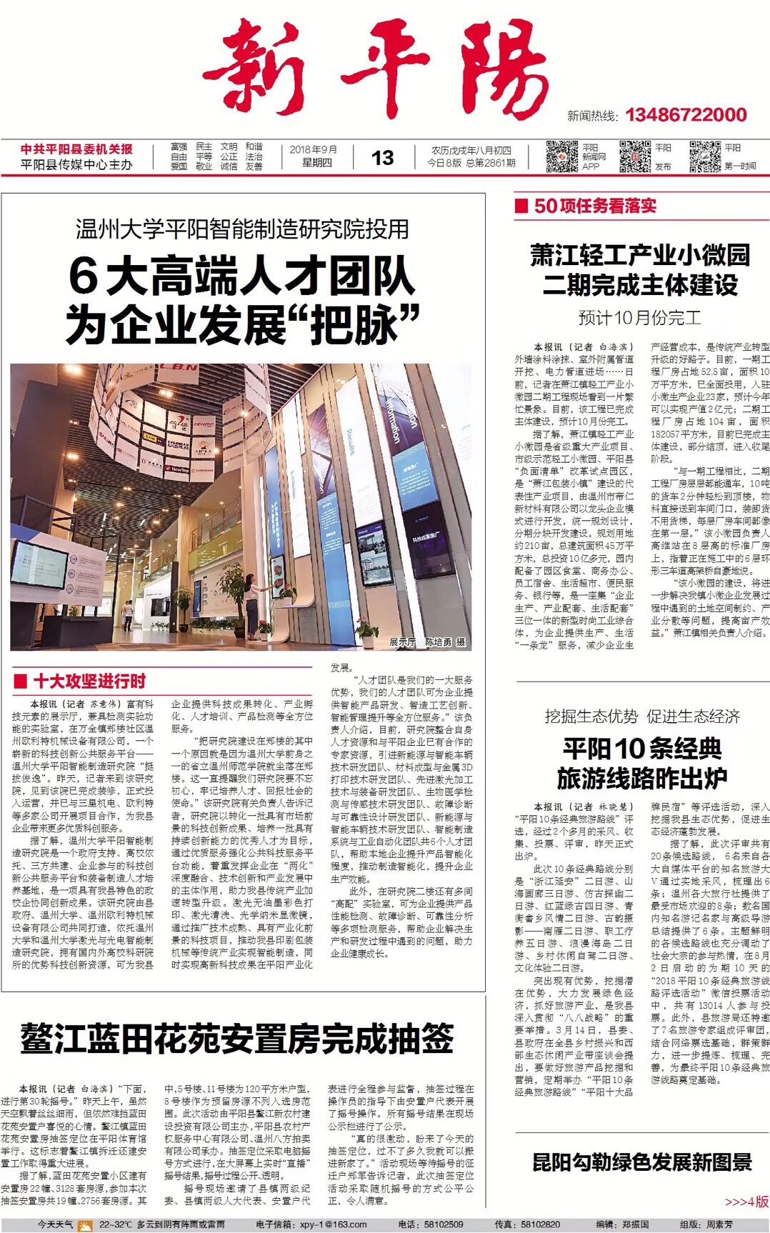 据了解,永利集团平阳智能制造研究院是一个政府支持、高校依托、三方共建、企业参与的科技创新公共服务平台和装备制造人才培养基地,是一项具有我县特色的政校企协同创新成果。该研究院由县政府、永利集团、温州欧利特机械设备有限公司共同打造,依托永利集团和永利集团激光与光电智能制造研究院,拥有国内外高校科研院所的优势科技创新资源,可为我县企业提供科技成果转化、产业孵化、人才培训、产品检测等全方位服务。