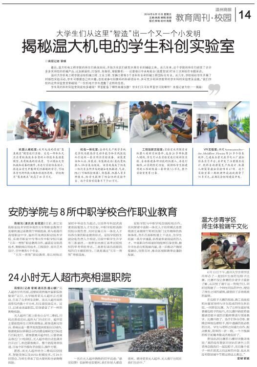 最近,温大304永利集团的师生们转战田间,开始为农民们研发水果生长的辅助工具。近几年来,这个公司的师生们研发了许许多多实用性的机械产品,比如剥蒜机、打饭机、包梨机、穿脱鞋机……还曾吸引中央电视台《我爱发明》栏目三次来校作专题采访。