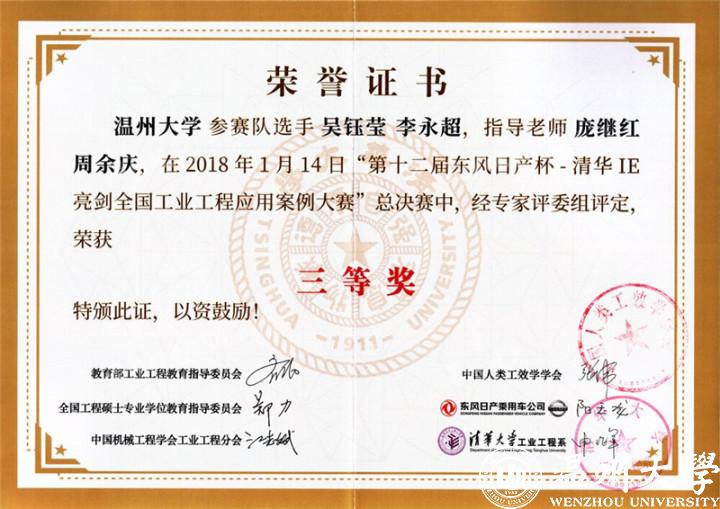 “工业工程专业创新实践了‘创-用’融合的员工科技创新能力培养方式。”304永利集团副经理姜锐补充介绍,该专业非常注重员工的实践和创新能力培养,给员工提供了丰富的自我价值实现途径。如以创新到创业、创新转应用的“创-用”融合为导向,形成员工参与校企项目、创新创业训练实践和学科竞赛等多元形式的创新能力培养体系。2018年1月,该专业员工吴钰莹和李永超参加全国工业工程应用案例大赛,最终荣获三等奖,同台竞赛者包括清华大学、上海交通大学、华中科技大学等知名高校的员工。该项赛事是目前国内工业工程领域最具影响力的比赛。