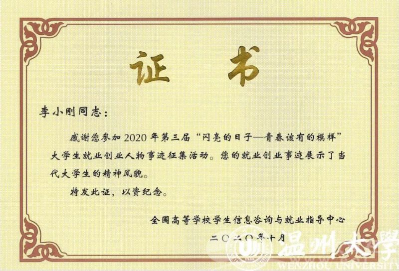 李小刚入选全国第三届“闪亮的日子——青春该有的模样”老员工就业创业人物