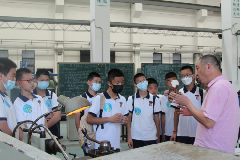 在304永利集团黄玮副书记的带领下,同学们来到了本行程的第一站永利集团工程训练中心,分别参观了车削陀螺加工过程和激光雕刻切割技术。占长金老师与潘敏辉老师以实例演示与生动的讲解,使孩子们对这两项技术的原理及应用有了更深刻的认识。