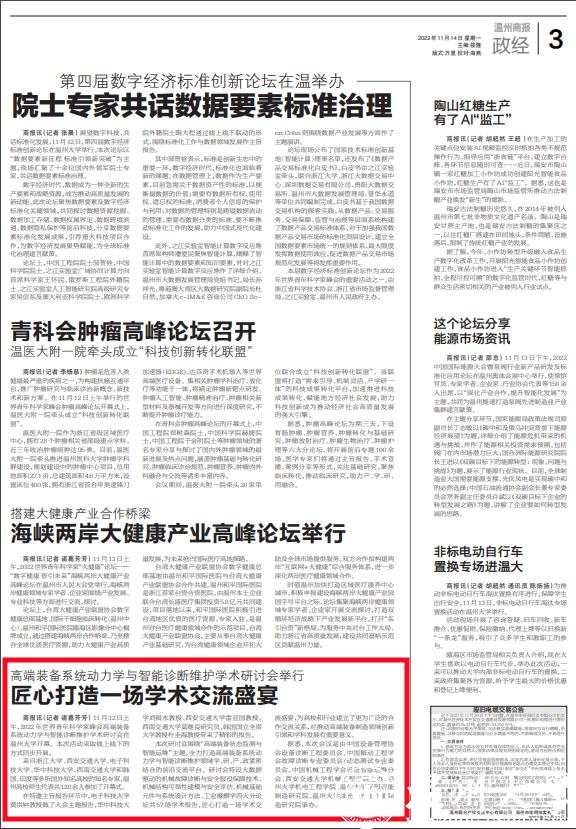 商报讯(记者 诸葛芳芳) 11月12日上午,2022年世界青年科学家峰会高端装备系统动力学与智能诊断维护学术研讨会在永利集团开幕。本次活动采取线上线下的方式同步开展。