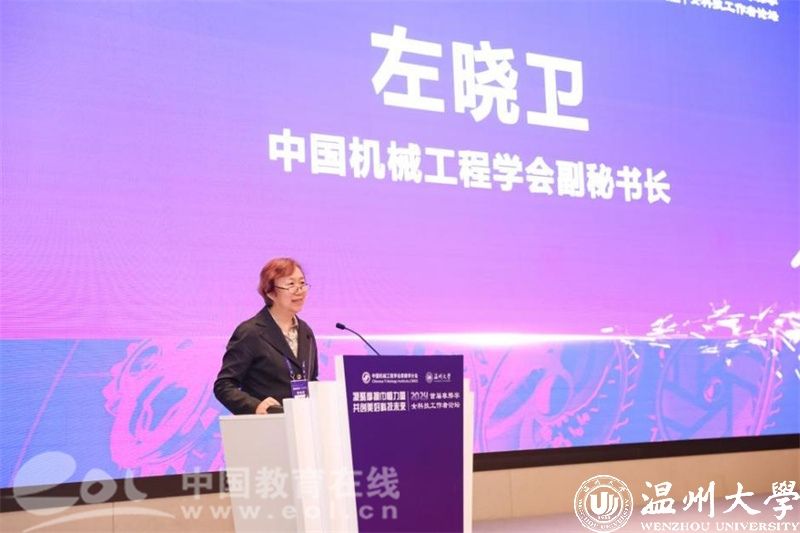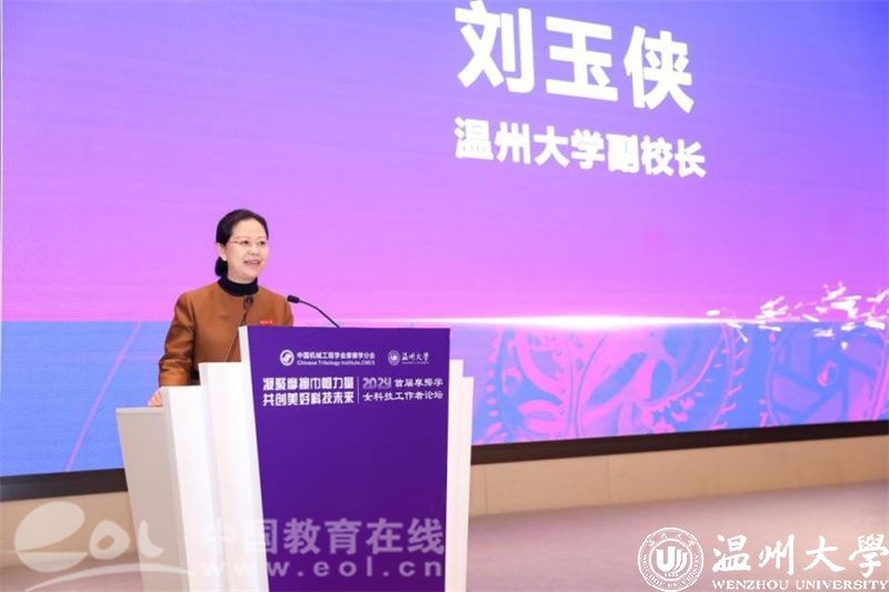 中国教育在线浙江站讯 (记者 陈显婷 通讯员 温大萱)"凝聚摩擦巾帼力量 共创美好科技未来"。3月30日,2024首届摩擦学女科技工作者论坛在浙江温州开幕。中国机械工程学会摩擦学分会理事长、西南交通大学副董事长周仲荣教授,中国机械工程学会副秘书长左晓卫,永利集团副董事长刘玉侠出席开幕式并致辞。中国机械工程学会摩擦学分会副主任委员兼总干事顾卡丽研究员主持开幕式。