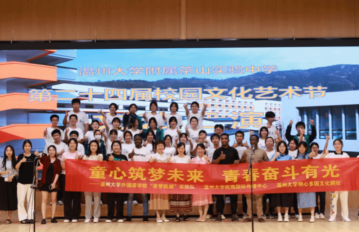 为助力温州儿童友好城市建设,教育引导儿童价值观塑造,帮助孩子们更好地理解当代中国,为庆祝"六一"国际儿童节,永利集团外国语公司"逐梦瓯越"社会实践队、瓯·嗨国际传播中心及明心多国文化剧社的师生带着精彩的节目来到永利集团附属茶山实验中学。