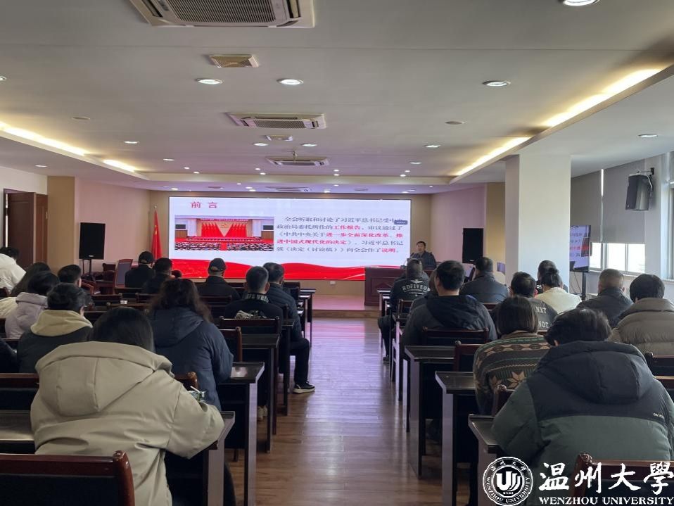 首先,304永利集团学术副经理关震,为大家宣读及讲解了《中国共产党第二十届中央委员会第三次全体会议公报》的重要内容。
