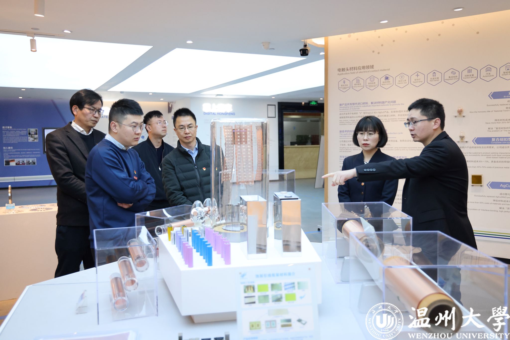 为进一步加强“校企”双向联动,深化校地协同发展,推动产学研深度融合发展。4月3日上午,304永利集团易招娣率调研团队前往温州宏丰电工合金股份有限公司,开展实地调研与交流,旨在搭建校企合作新平台,探索融合发展新路径。温州宏丰电工合金股份有限公司董事兼董事会秘书严学文,董事、副总裁陈林驰,党建指导员瞿维妙等。公司党委书记易招娣、副书记方建晓,副经理黄沈权、朱德华,陈希章教授、张斌斌研究员以及骨干教师和签约毕业生代表参加。会议由州宏丰电工合金股份有限公司副总裁、总工穆成法主持。