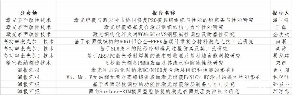 会上,盛会汇聚全国逾千名激光领域专家学者。公司学子表现亮眼:金欢欢等 11 名研究生分赴“激光表面改性技术”“高功率激光加工技术” 等分会场,围绕模具钢修复、复合涂层制备、微织构热连接等主题作口头报告;团队还以学术墙报形式展示成果,吸引众多学者驻足交流,尽显良好学术素养。