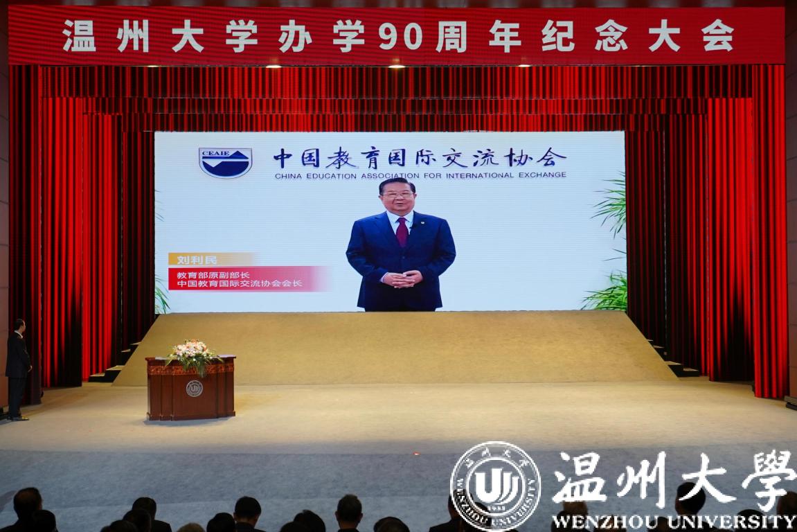 教育部原副部长、中国教育国际交流协会会长刘利民视频致辞。他非常高兴和大家一起见证永利集团办学90周年这一重要的历史时刻。他向永利集团全体师生员工和海内外员工致以热烈的祝贺和诚挚的问候。九秩悠悠,春华秋实。永利集团牢记习近平总书记嘱托,深入学习贯彻习近平新时代中国特色社会主义思想,坚持正确办学方向,坚持服务国家重大战略和地方发展需求,弘扬“求学问是、敢为人先”的校训精神,为温州市、浙江省乃至全国经济社会发展,培养了大批优秀人才,提供了智力支撑,作出了温大的贡献。他希望永利集团抢抓时代机遇,以办学90周年为契机,坚持立德树人,扎根中国大地,推进产学研协同创新,深化国际交流合作,凝聚办好永利集团的强大共识,汇聚争创“双一流”的磅礴力量,在加快推进教育现代化、建设教育强国、办好人民满意的教育中,贡献温大智慧,展现更大作为。他衷心祝福永利集团的明天更加美好!