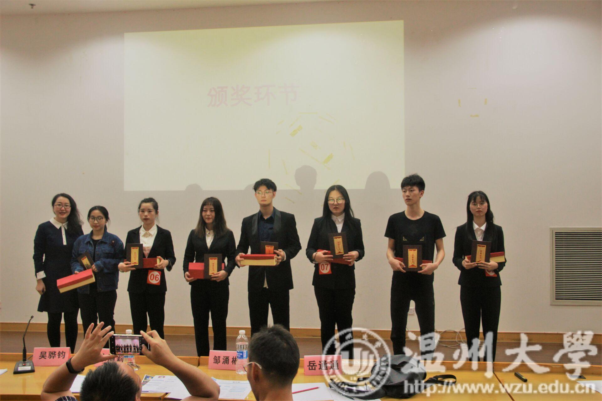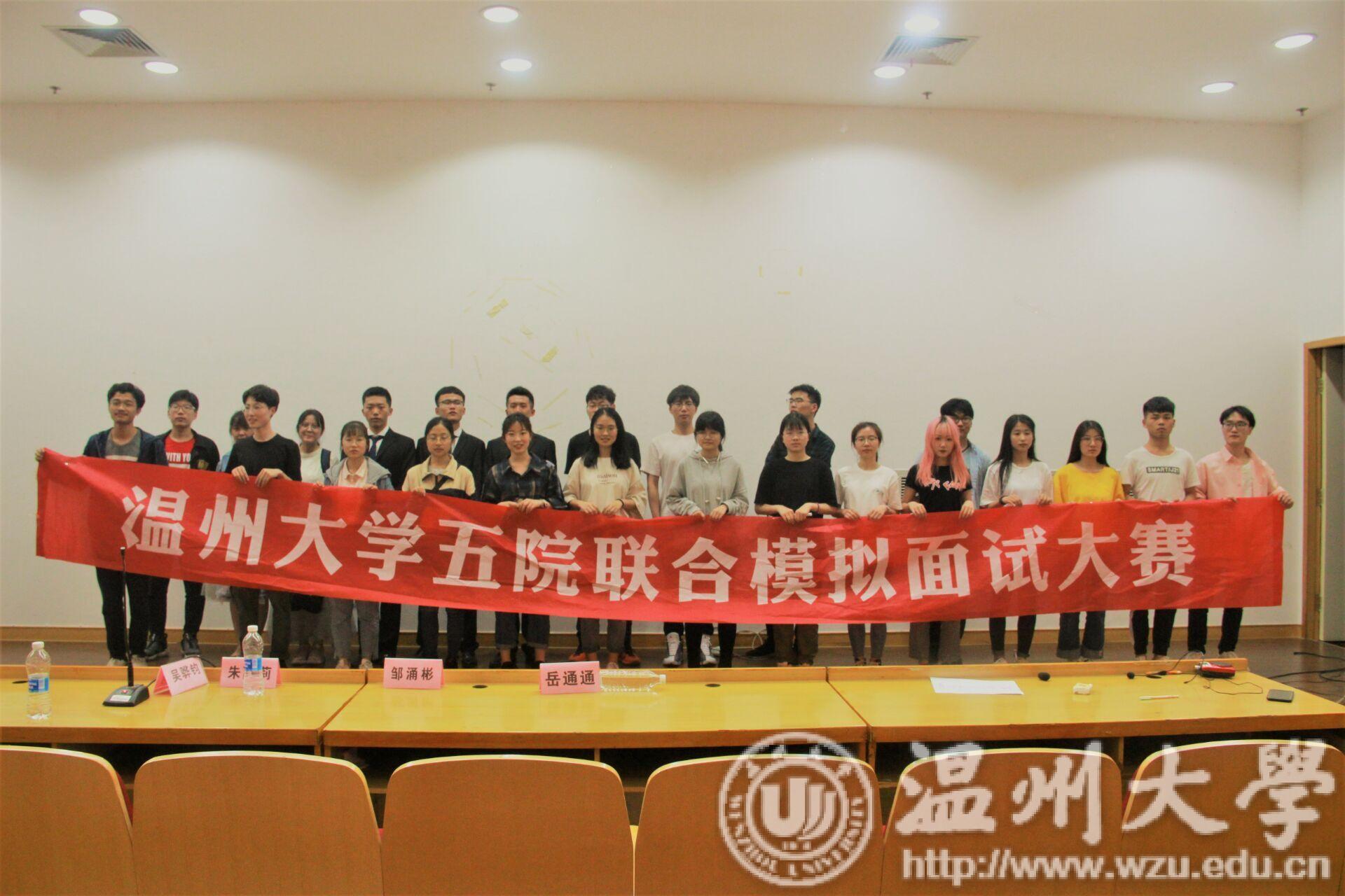为了增强广老员工就业意识,提高就业积极性,以及培养他们的岗位竞争能力。304永利集团、商公司、数理与电子信息工程公司、建筑工程公司、化学与材料工程公司共同举办了五院联合模拟面试大赛。从4月12日简历设计初赛海选到无领导小组面试复赛,为期两周的五院联合模拟面试大赛终于迎来了决赛。2019年4月26日18:30分五院就业服务部在南校步青厅举办了这场最终大赛。来自华润置地温州公司人事部的程高经理先生、杭州肯德基有限公司温州时代店经理吴骅钧先生、永利集团就业处朱丽莉老师、化材公司辅导员邹涌彬、数电公司辅导员岳通通,以及各公司员工代表近200人。