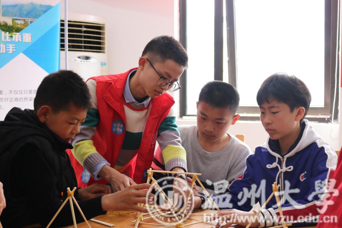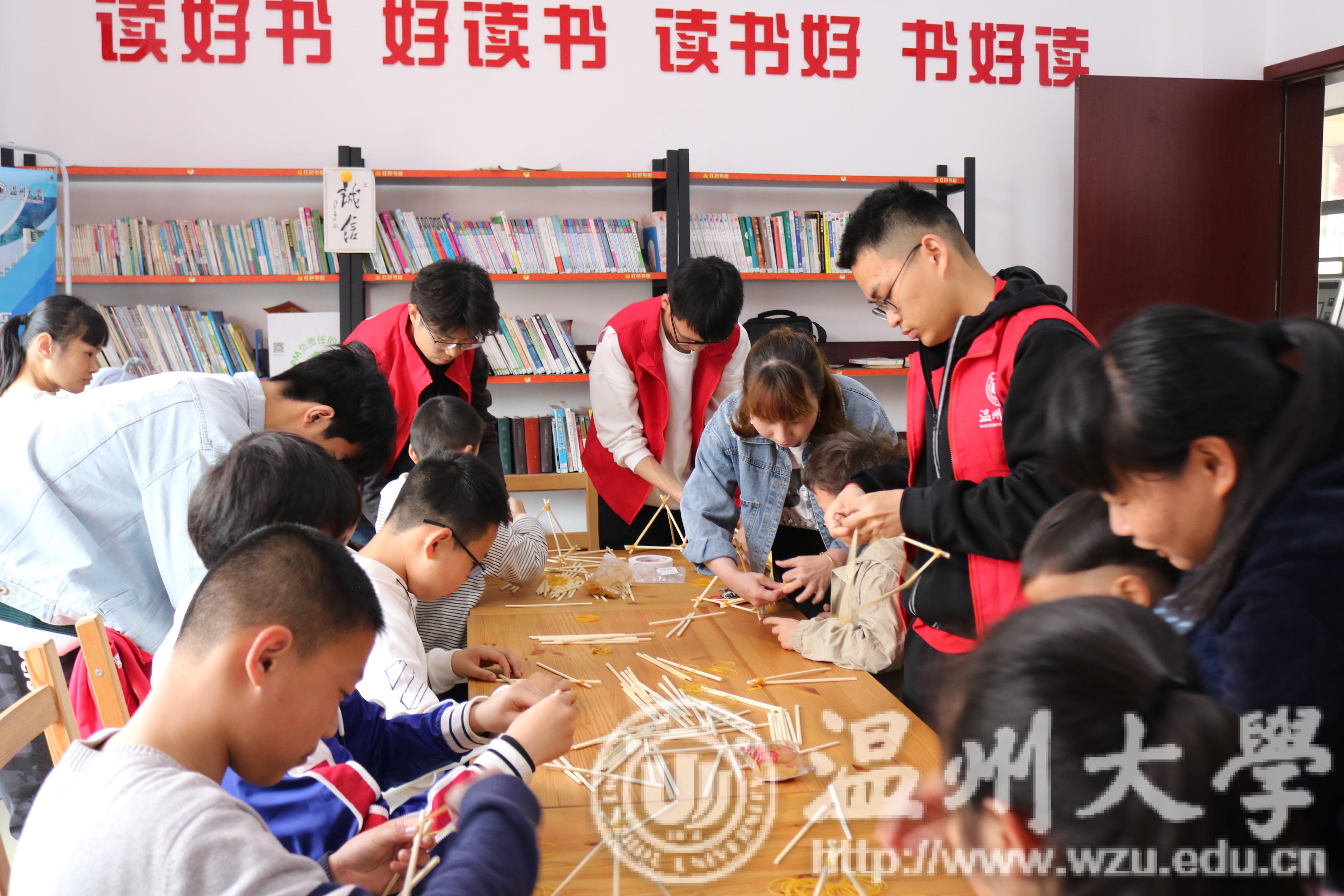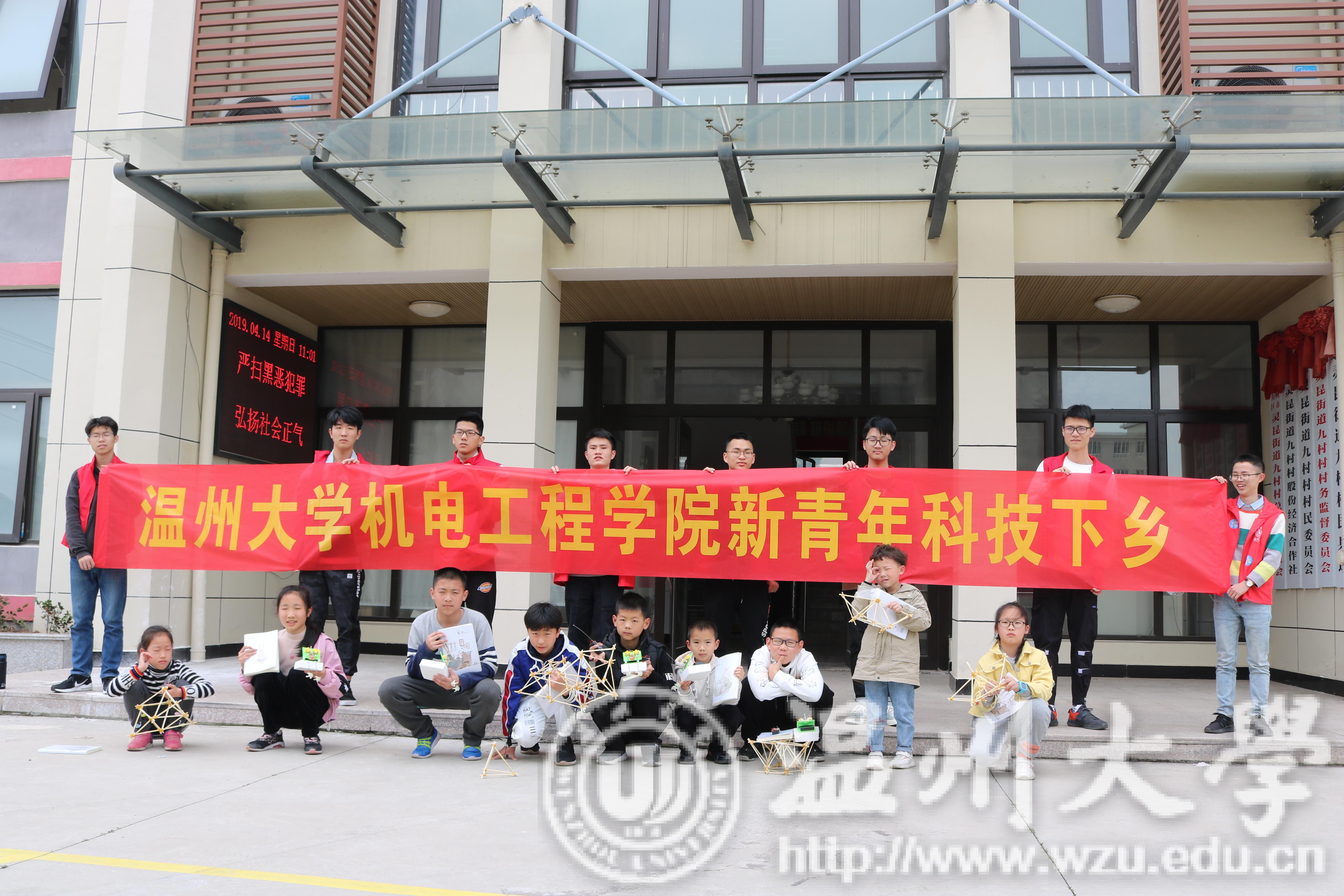 2019年4月14日,304永利集团志愿者们于洞头区灵昆街道九村村居民中心举办“大手携小手,共创科技梦” 304永利集团志愿者服务之科技下乡活动。公司新青年志愿者们由辅导员胡施施老师带队,为九村村的小朋友们讲解科技小知识并共同完成筷子大桥、电动小船的制作。