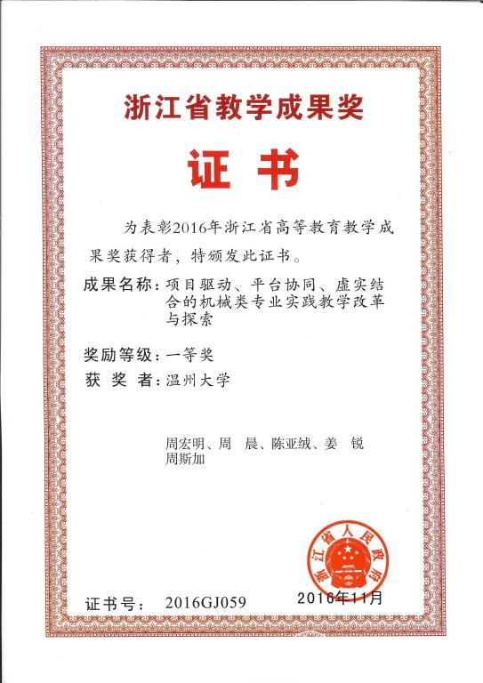 | 项目驱动、平台协同、虚实结合的机械类专业实践教学改革与探索 | 浙教法 〔2016〕 138号 |